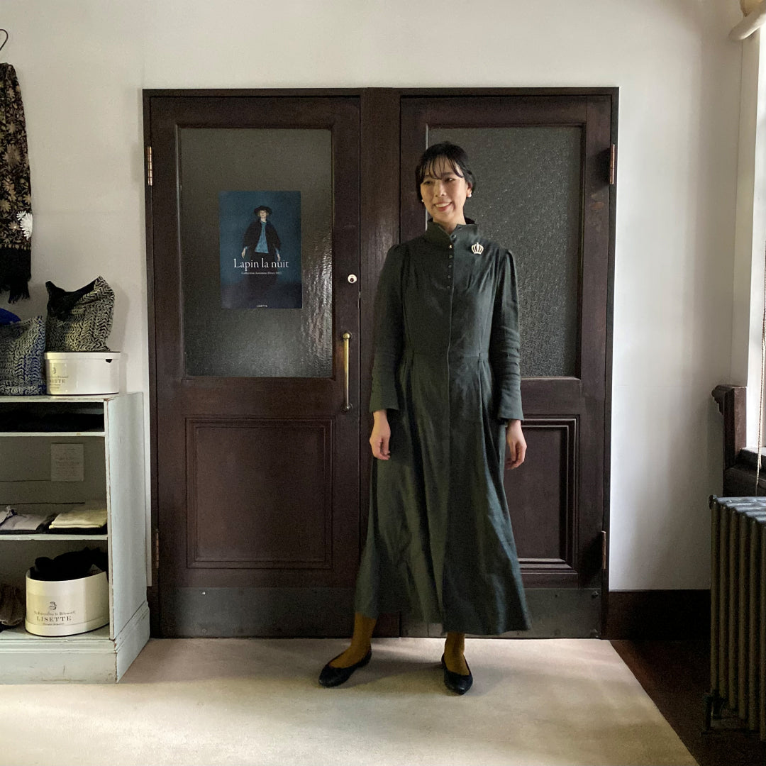普段ゆったりとした洋服が多い中、クラシックなワンピースは新鮮で背筋がピンと伸びるよう。