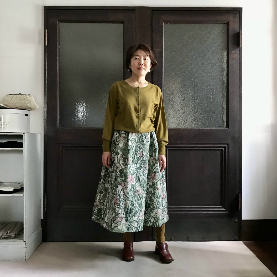 ハリのあるきれいなシルエットのスカートは色んなトップスとバランスがとりやすいです。