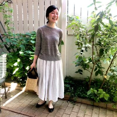 花のような刺繍が可愛い一枚、シンプルなものと合わせるのが好きです。