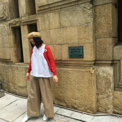 ボレロ風のカーディガンだからワイドパンツとバランスがちょうどよいです。