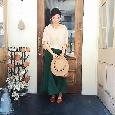 ロングスカートとあわせてメリハリのあるコーディネートに。