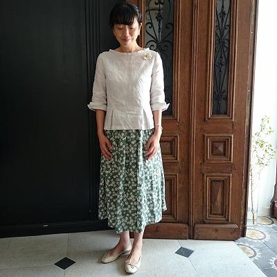 新作のブラウスは、小さく立ち上がった衿元の美しいラインがお気に入りです。