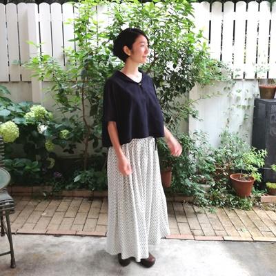 風の通るゆったりとしたブラウスに、なめらかなスカートを合わせました。