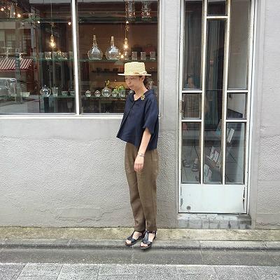 久しぶりに太陽が隠れ暑さが和らいだ今日は、落ち着いた色のボトムスと合わせたい気分に。
