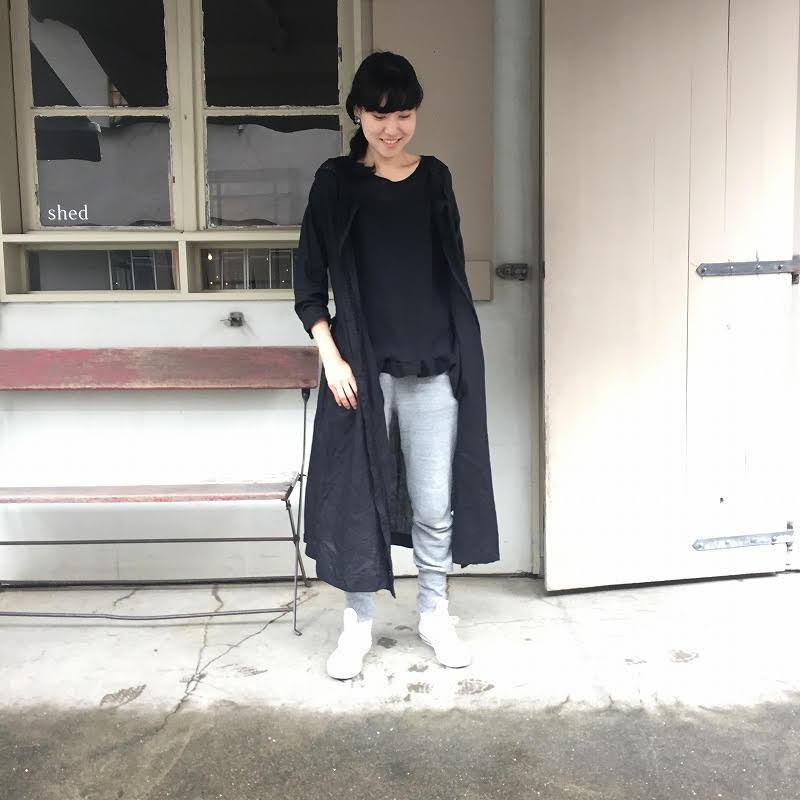台風接近で朝から雨と風。とにかく動きやすさを重視したい日にはスウェットパンツは大活躍です。カジュアルになりすぎないようにレースのロングガウンを羽織りました。皆さまお帰りの際にはお気をつけて。
