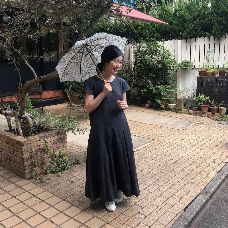 レモンツリー柄の日傘を主役に、ワンピースはシンプルなものを選びました。