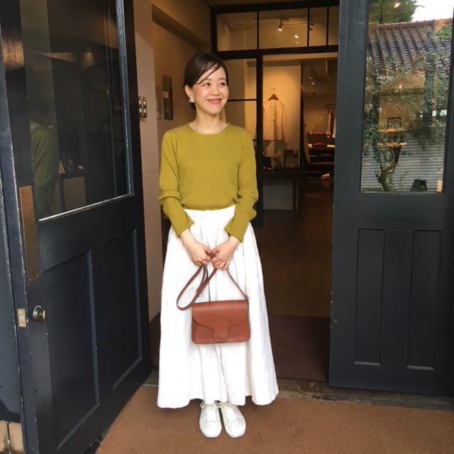 雨降りの今日は明るい色が着たくて新作ニットを。