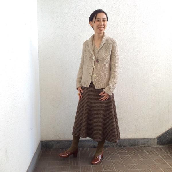 革小物は黒系が好みだったのに、今季この靴を買い求めてから茶色をアクセントにしたコーディネイトが新鮮!