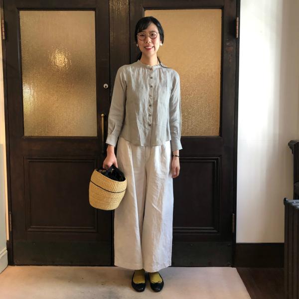 グレーと白の柔らかな色合いで爽やかな装いにしました。