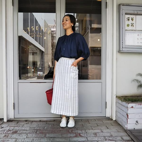 ボリュームのあるブラウス。普段はパンツで合わせることが多いですが