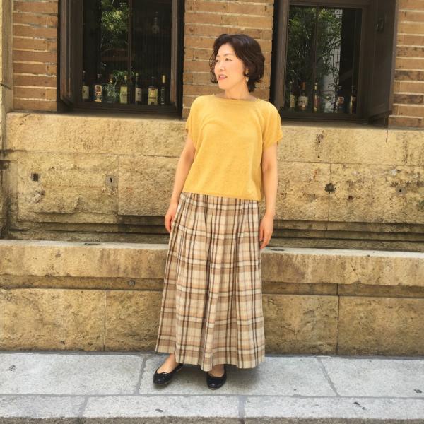 涼しげなチェックのスカートはこれから活躍しそうです。