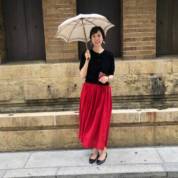 赤×黒と色のコントラストのあるコーディネートも楽しいです!
