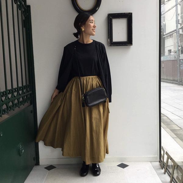 スカートにしか見えないパンツはコットンリネンの素材ですが、生地がたっぷりなので秋冬にも活躍しそうです。