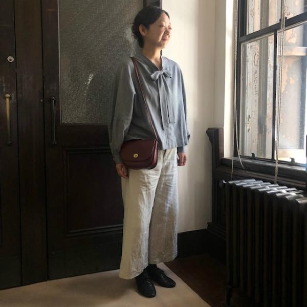 リボンがポイントのブラウスは、少しきっちりとした雰囲気の秋のお洒落をたのしめます。