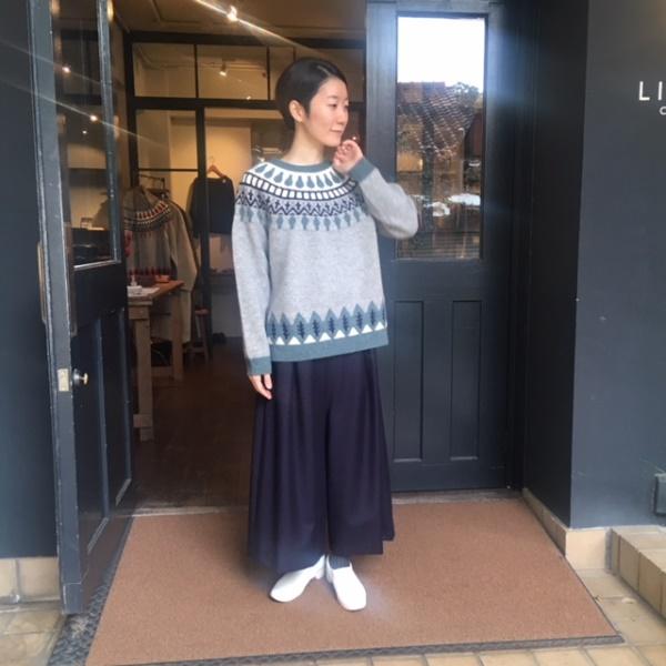 懐かしい気持ちになる柄のセーターを着て暖かく。