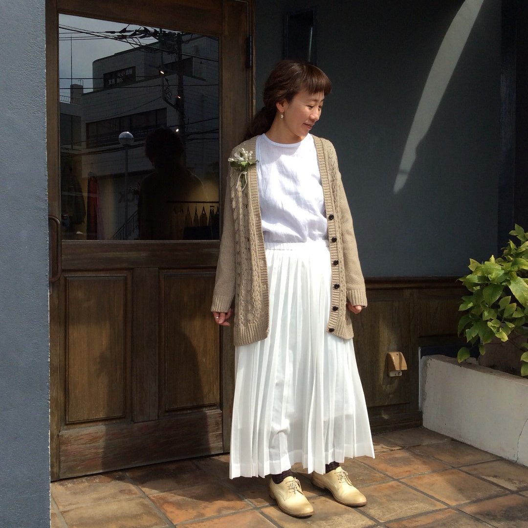 シルクのカーディガンはゆったりしていて保温性もあり風通しも良く大活躍です。