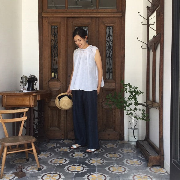 マニッシュな吊り紐パンツのベルトランですが、紐を使わずコーディネート。暑い日は真っ白が気持ちいいです。