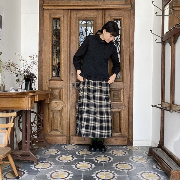 襟がレースの遊び心あるブラウスを合わせて。今年はボリュームのある靴を履きたいです。