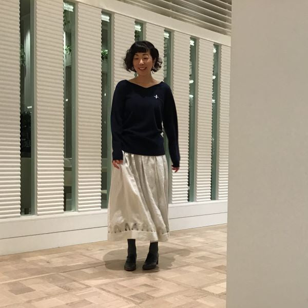 厚さのあるリネン地のスカートは、冬の装いにも活躍します。