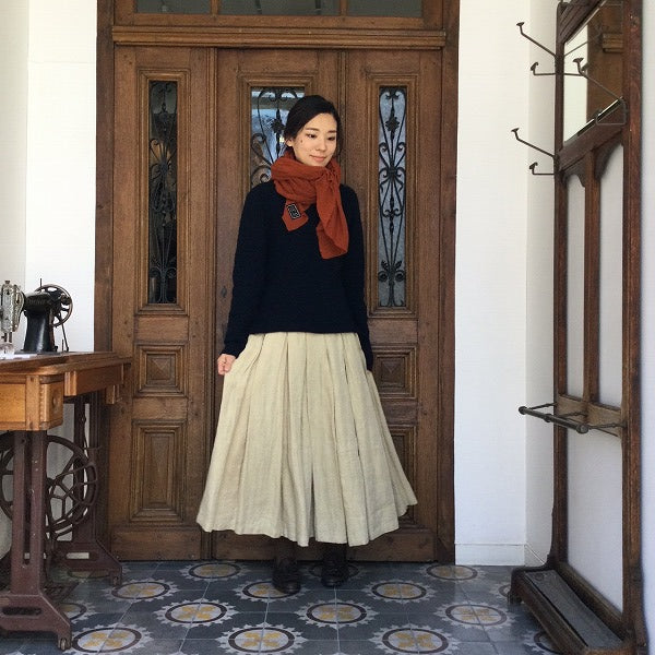 リネン生地をたっぷり使って仕立てたティナは重さのあるニットにもボリューム感が負けずしっくり。真冬でもコーディネートにかかせないアイテムです。