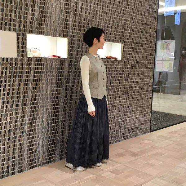 控えめなチェック柄シリーズが入荷したのでベストをスカートと合わせて。