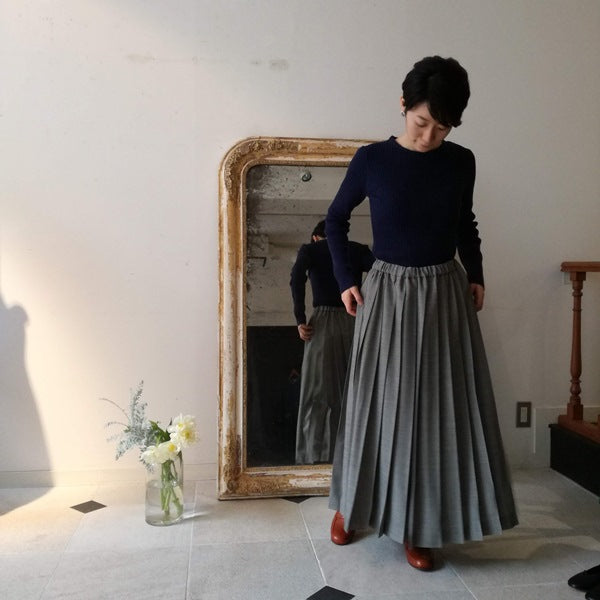 3色愛用しているシシリアをプリーツスカートと合わせて。