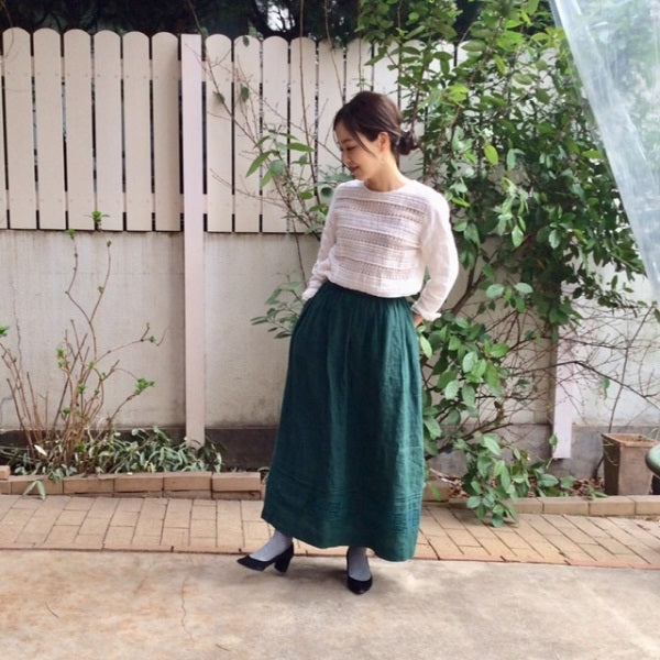 リネン素材だから甘くなりすぎず、気負わずに普段使いしやすいです。