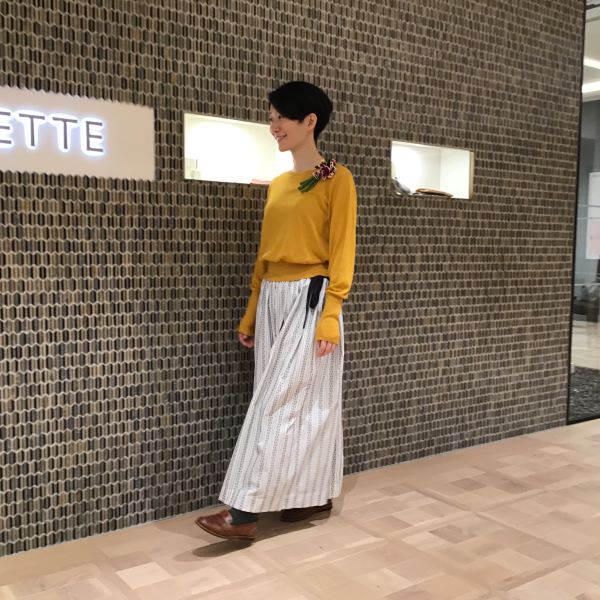 黄色のニットに元気をもらって、軽やかに歩きたい春。