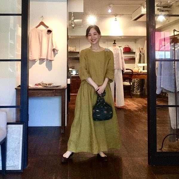 落ち着いた色合いながら印象がふわっと明るくなるワンピース。