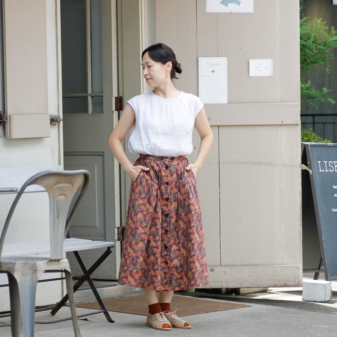 8月ももうすぐ終わり。昨年つくった紅葉のリバティ柄のフレアスカートで、一足早く秋気分を楽しんでます。このスカートはポケットがついているのが好きなところ。長袖シャツやニットと合わせてこれから冬まで楽しむ予定です。