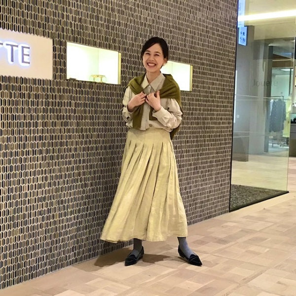 とろみのあるブラウスはよそゆきにも普段にも合わせやすくて、リネンのシャツとはまた違う柔らかな表情で馴染んでくれます。