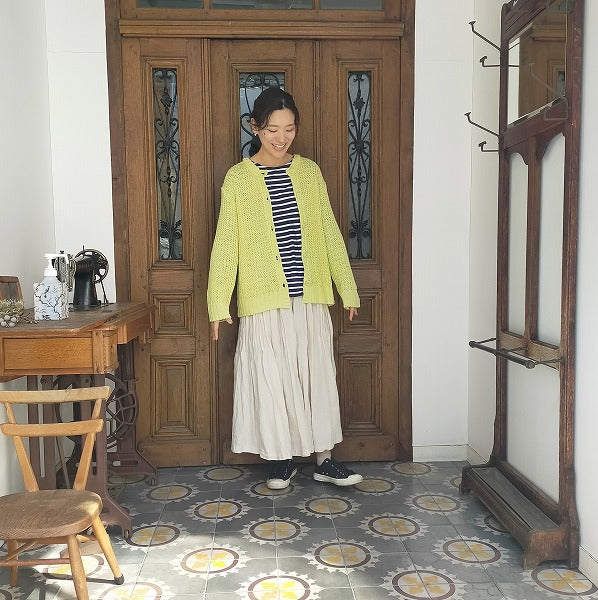 レモン色のようなニットと合わせればいつものボーダーも新鮮!春から初夏まで体温調整にぴったりで、手に取ると明るい気持ちになれるのがよいです◎