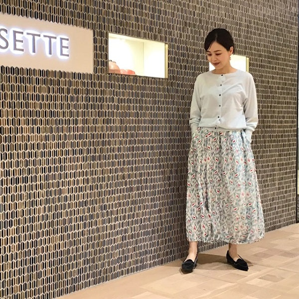レーヨン混の柔らかな落ち感があって、水色のニットと同系色で合わせる優しい組み合わせが気に入っています。