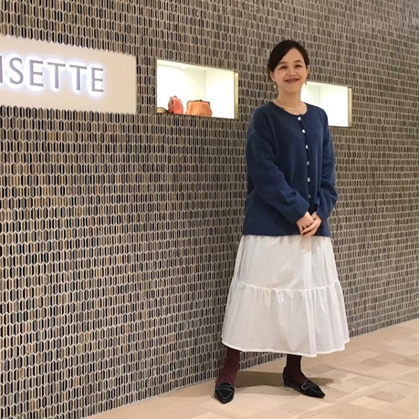 寒い季節は肌触りのやさしいニットに気持ちも癒されます。真っ白いスカートと合わせると色合いが一層映えて、色違いで楽しみたくなるニットです。