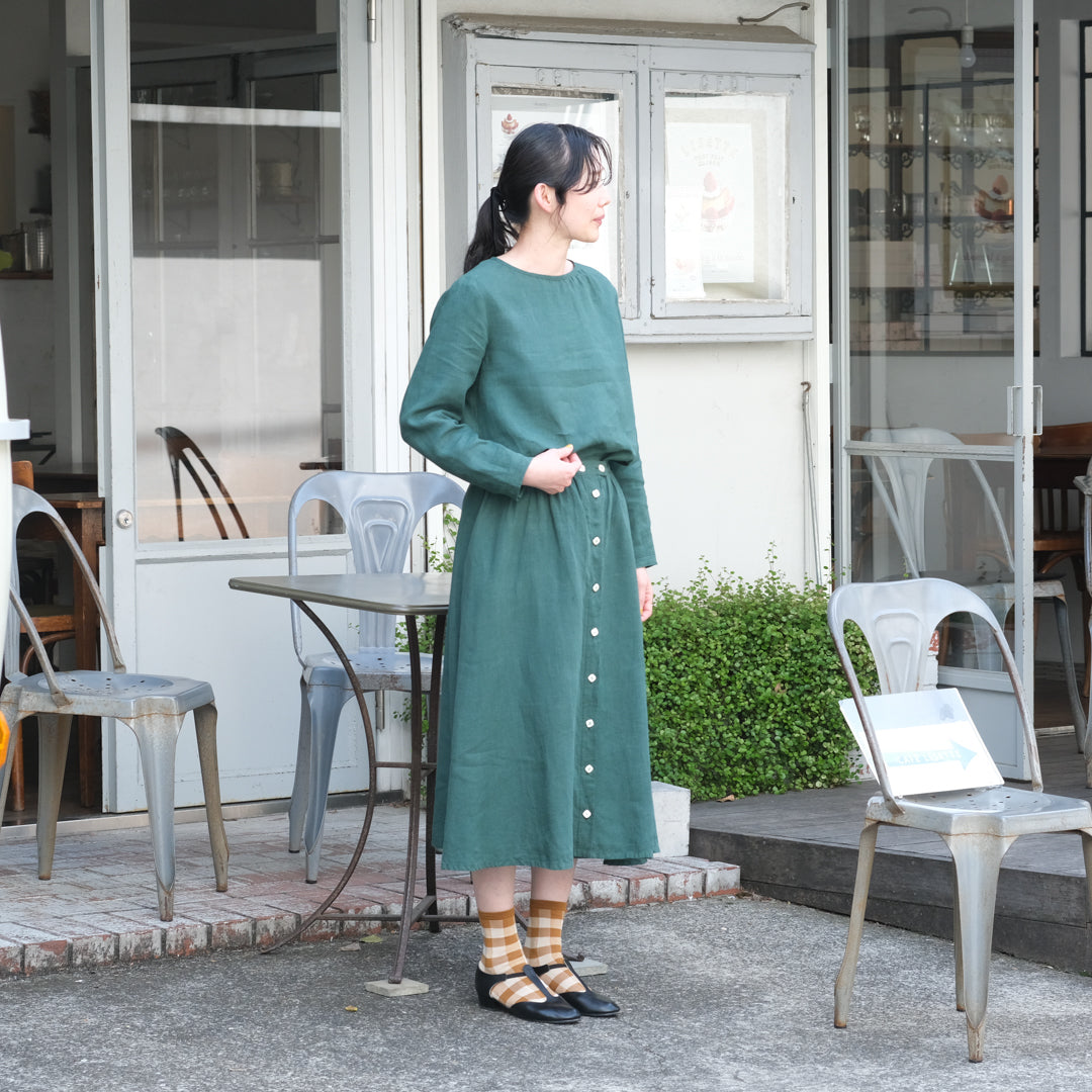 ※フロントボタンのフレアスカートは、リネンバード二子玉川店・北浜店でのセミオーダー商品。ブラウスも、店頭で完成品のオーダーができます