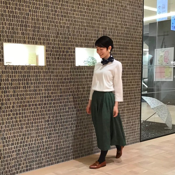 先日水玉のスカーフを巻いていた素敵なお客様がいらしたので、今日は真似してリネンのハンカチをくるり。