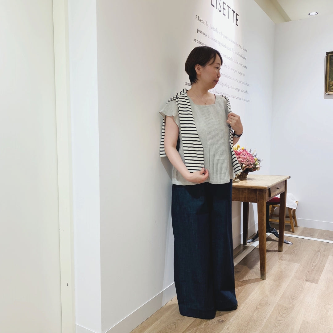 繊細なピンタックは、縦のラインを際立たせ、すっきりとした印象に。風のとおるフレンチスリーブが暑い夏でも涼しく過ごすことが出来ます。