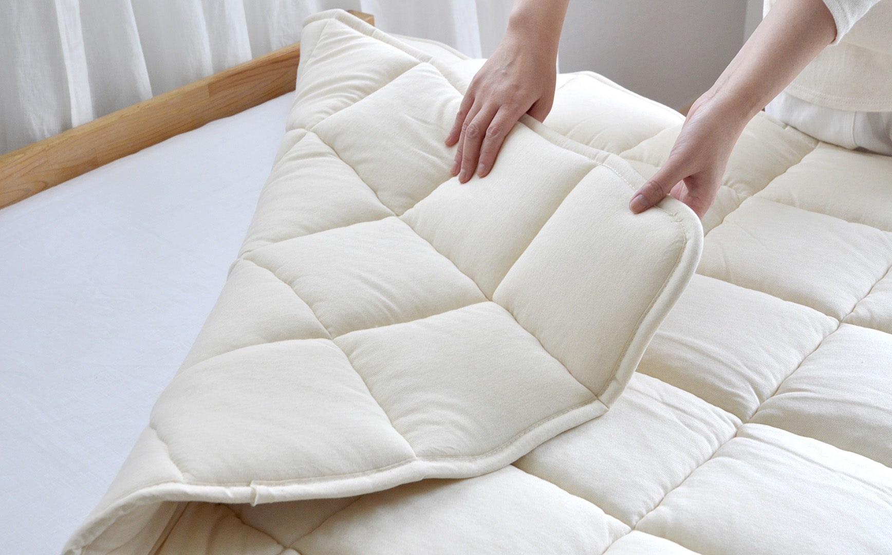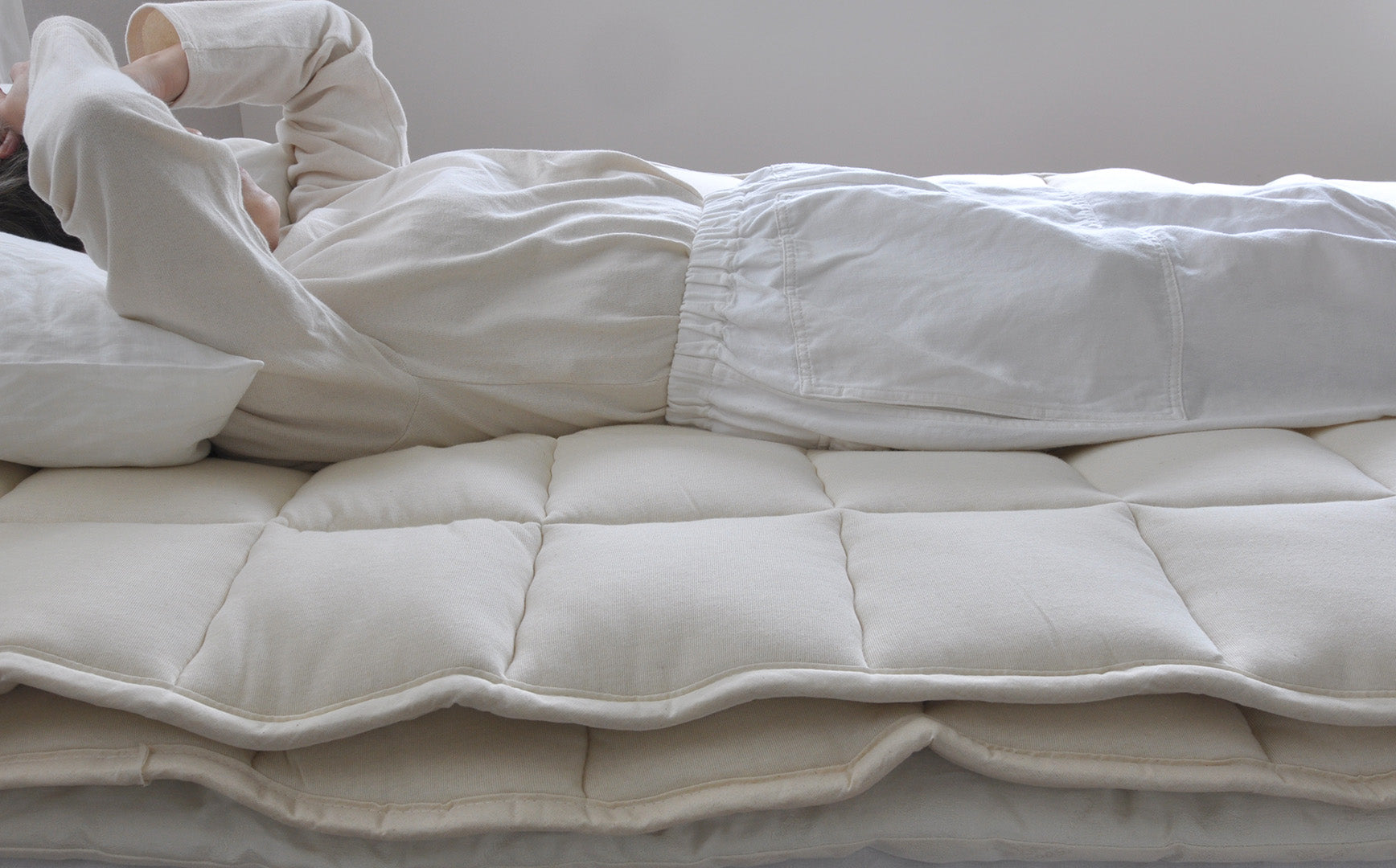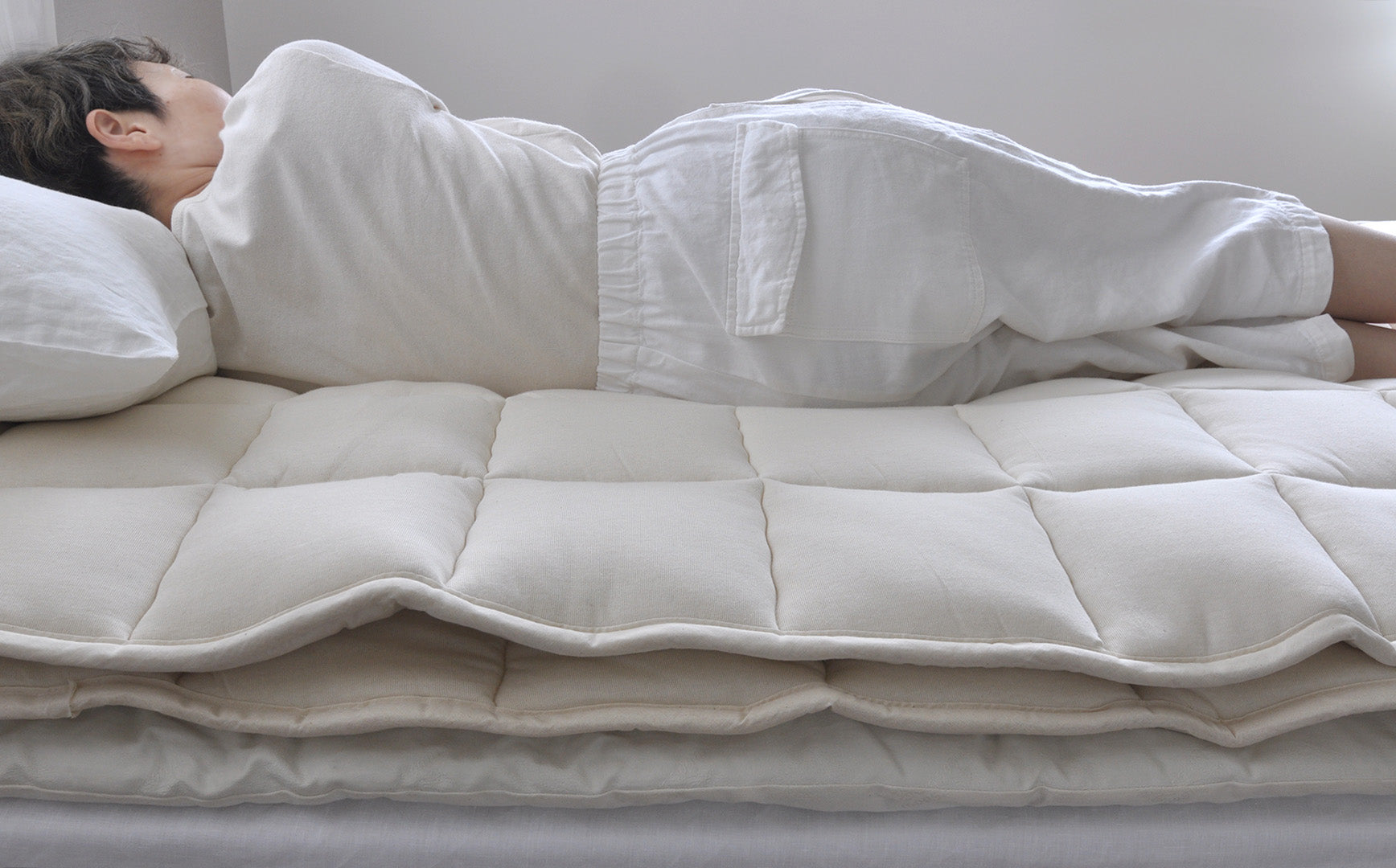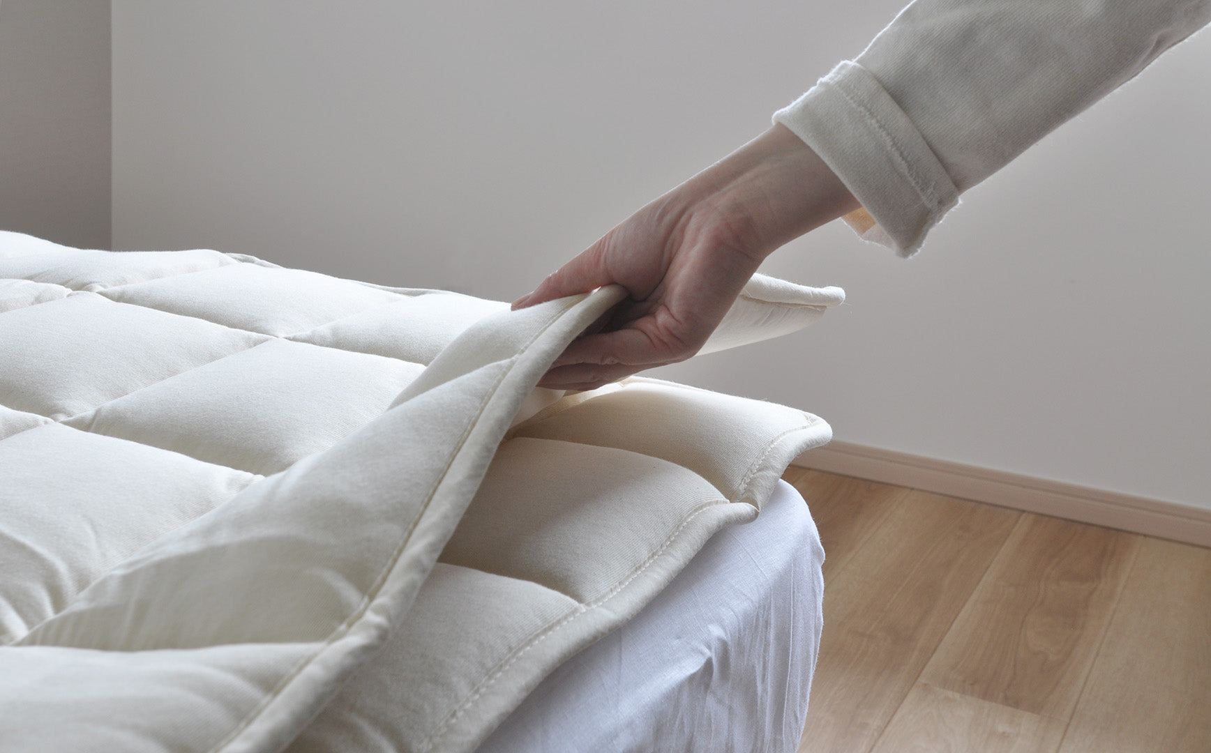 身体を支えて理想の寝姿勢に導く、ウールのベッドパッド