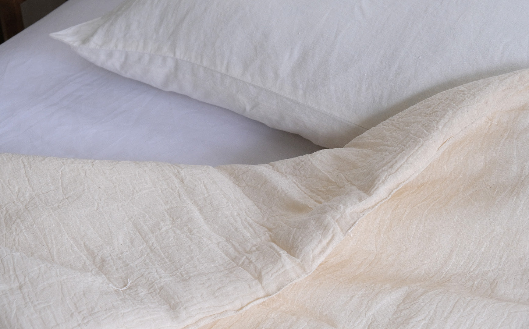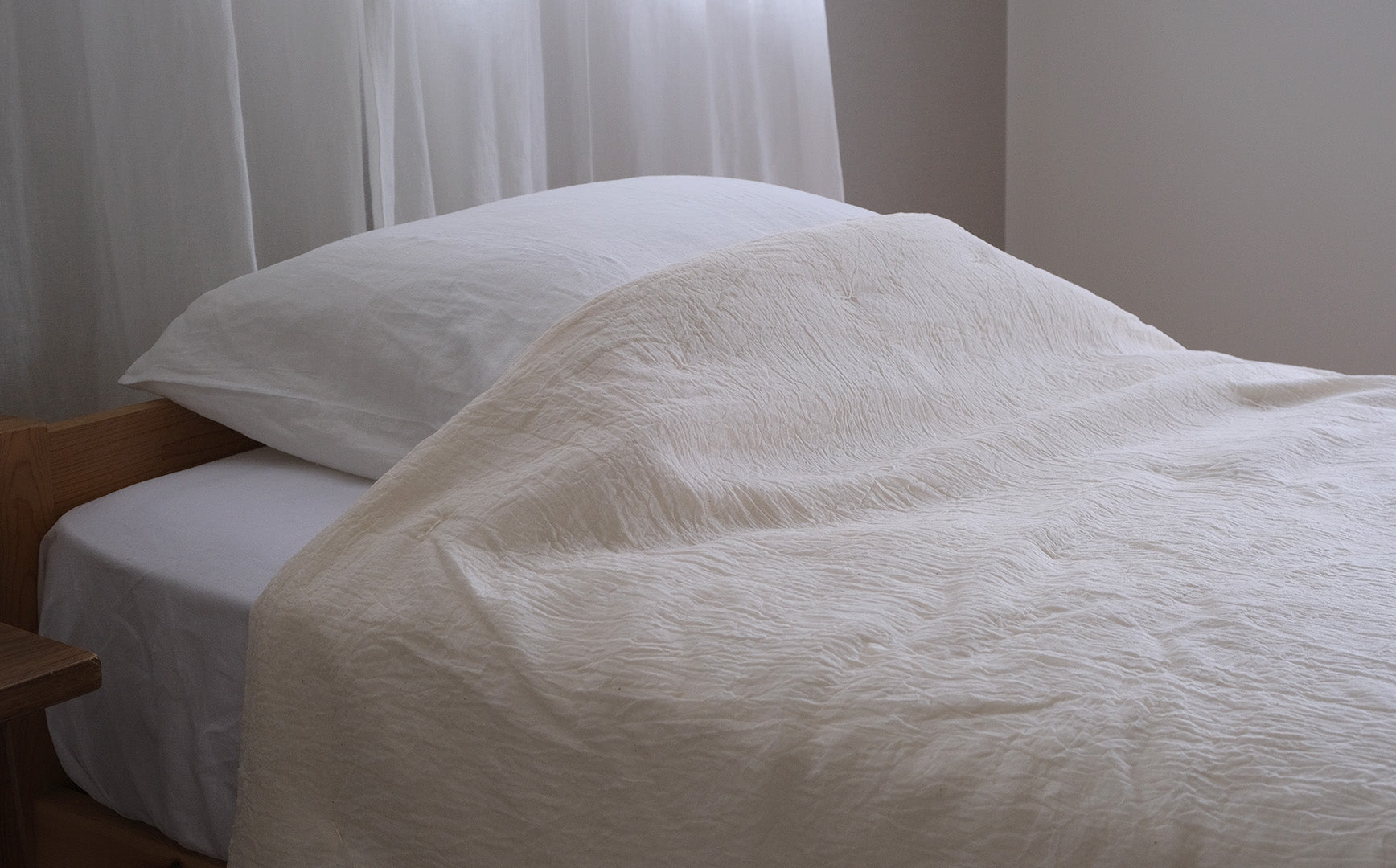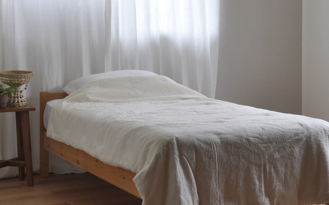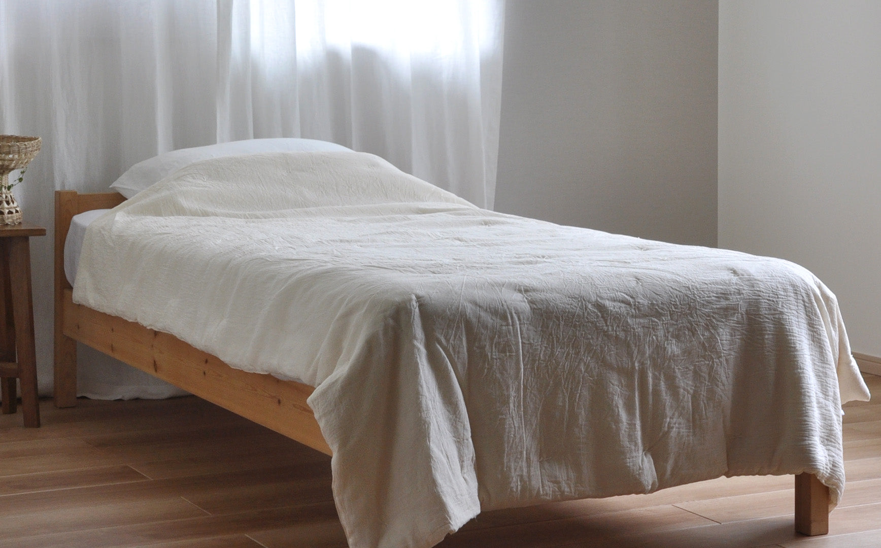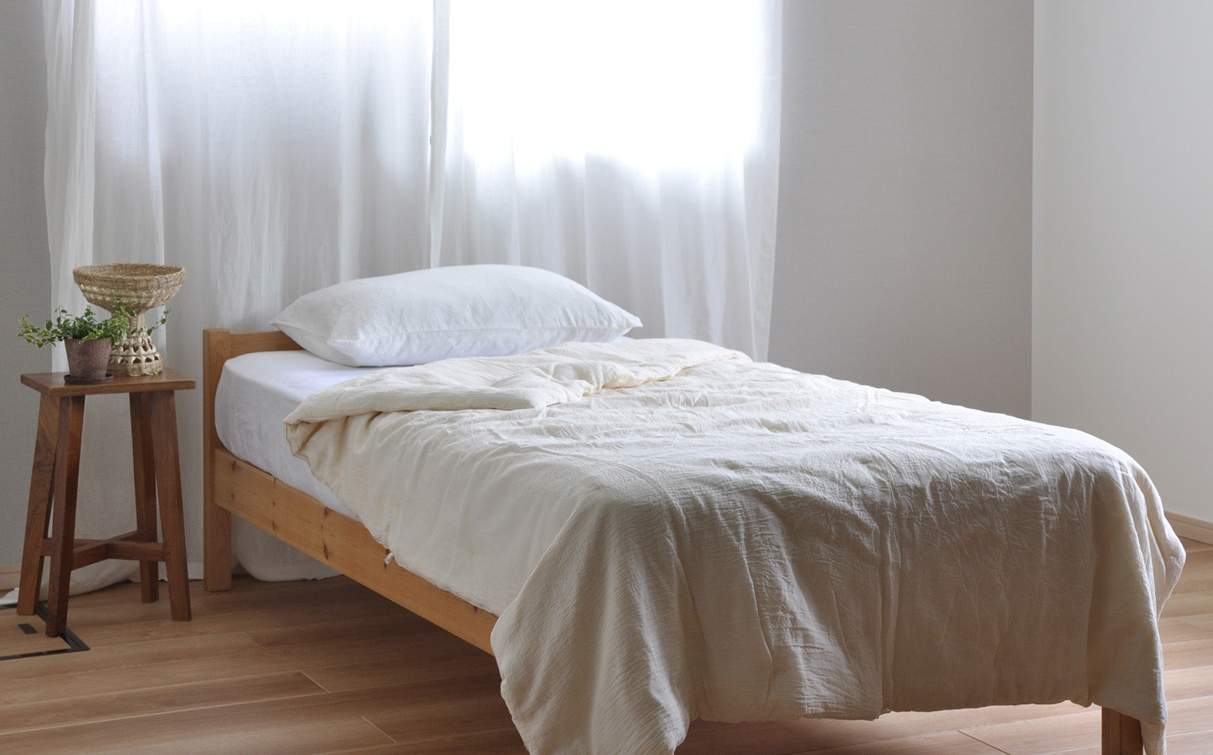 現在は天然素材にこだわり寝具アイテムを展開。ラインナップの特徴は、直接材料を仕入れてつくられたオリジナルの寝具と、自ら生産地へ足を運び、選び抜いたものであること。