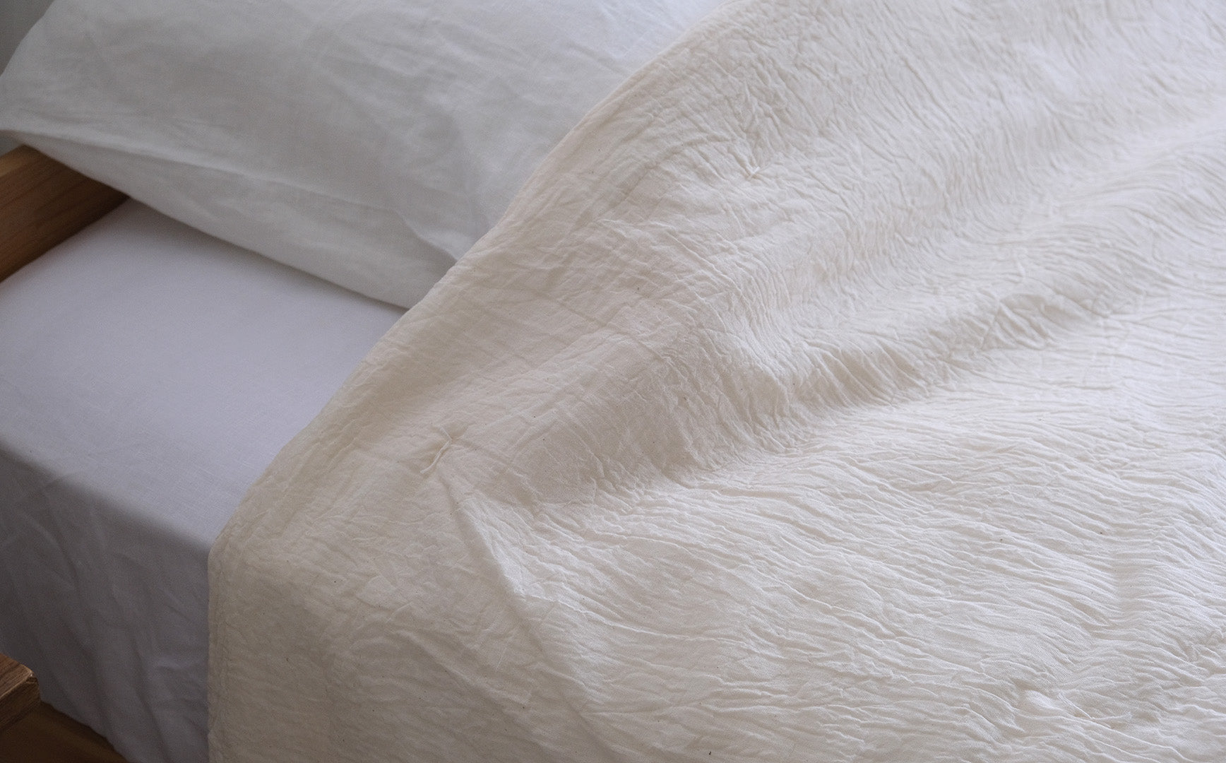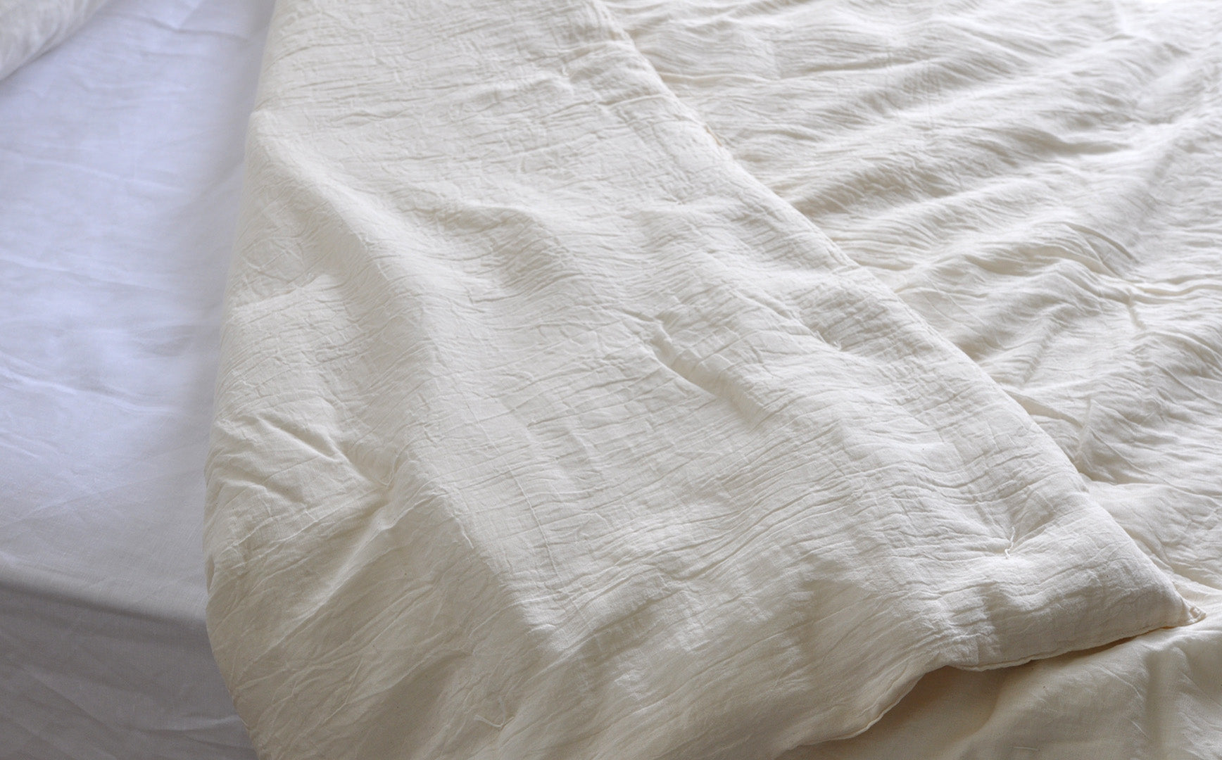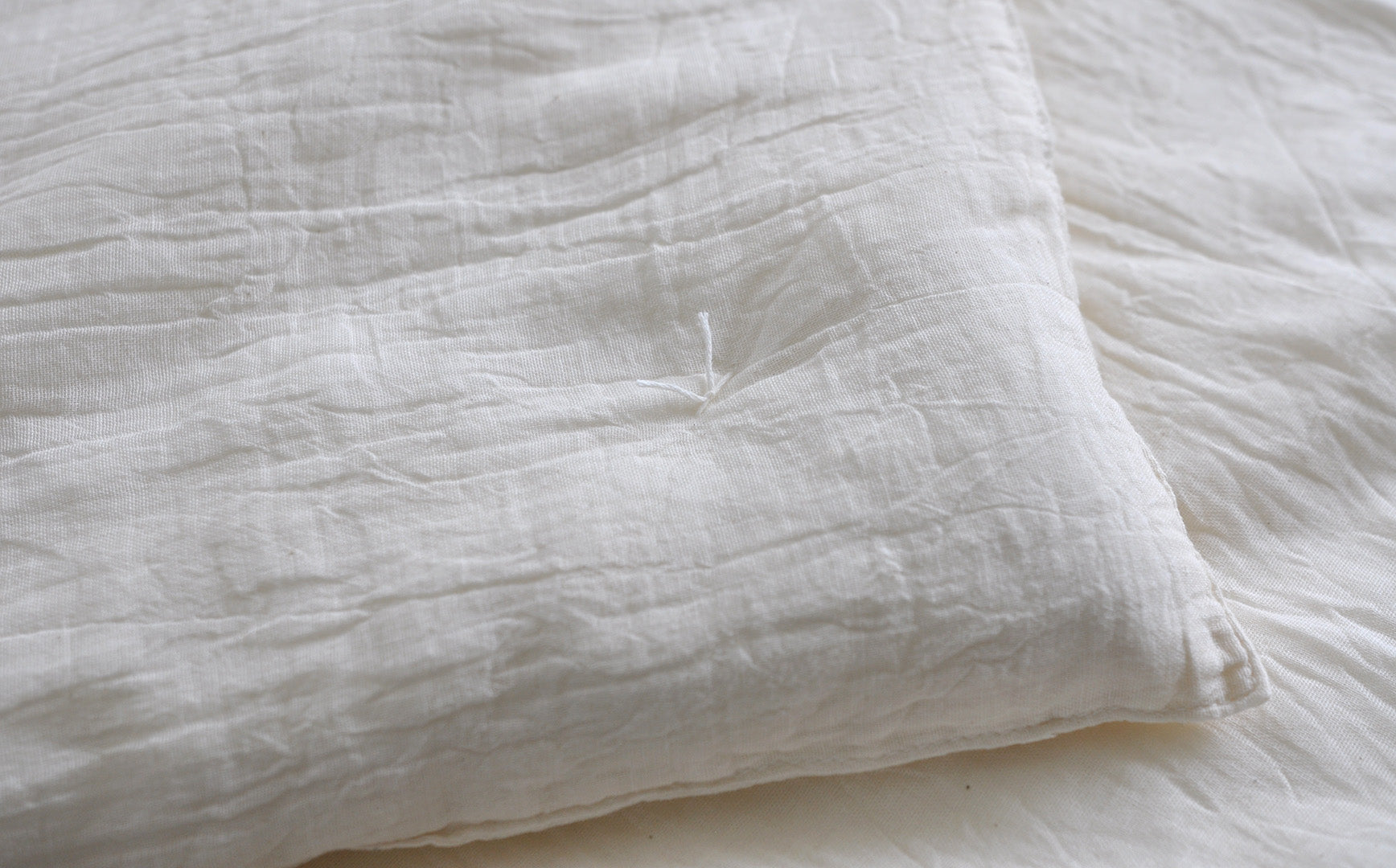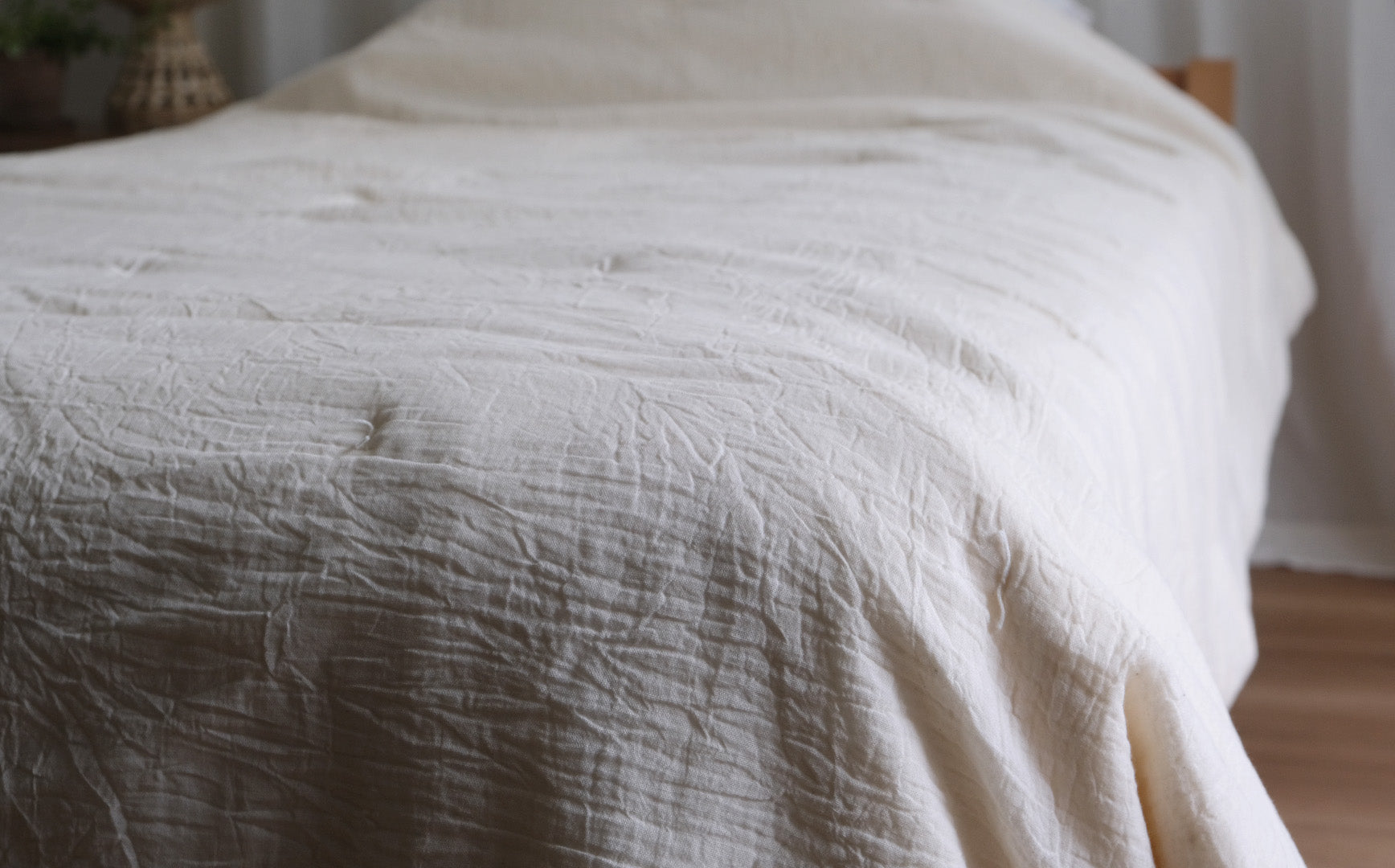▲秋口はリネンパイルケットと真綿肌掛け布団の組み合わせもおすすめです