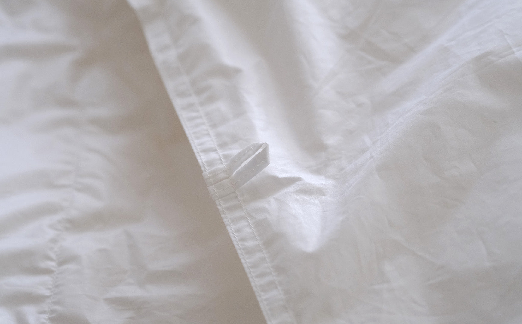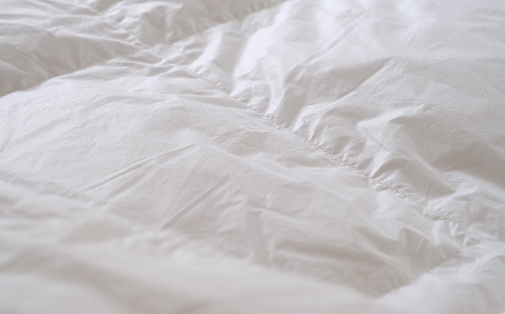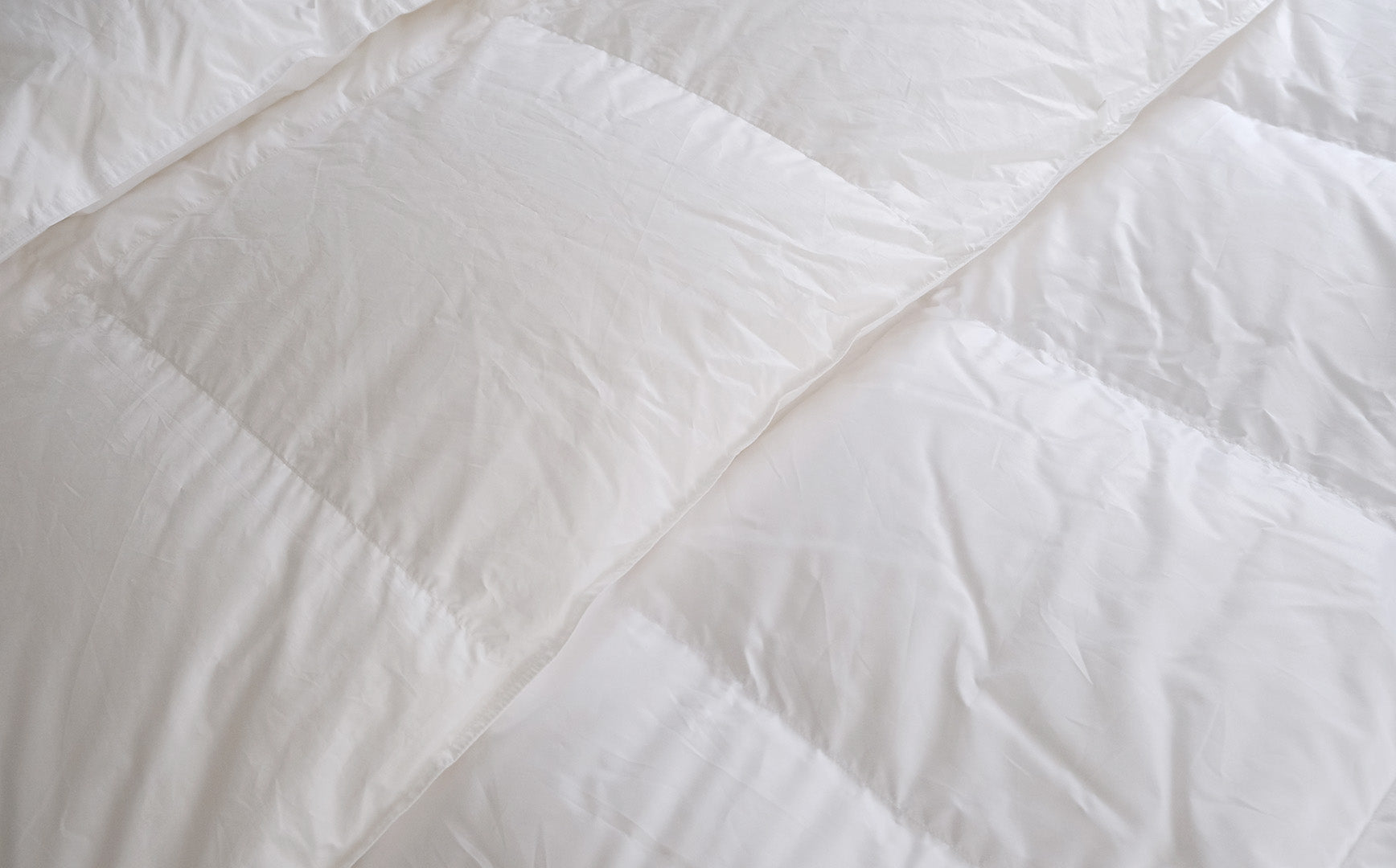 羽毛布団でとても大切になるのが、側生地の存在。ISHITAYAの側地は薄く柔らかな細番手の綿100%(織りの密度を表すスレッドカウントは343)を使用。羽毛の質に合うトップクオリティの側地でつくられています。使い込むほど柔らかくなる心地よさを体感してください。
