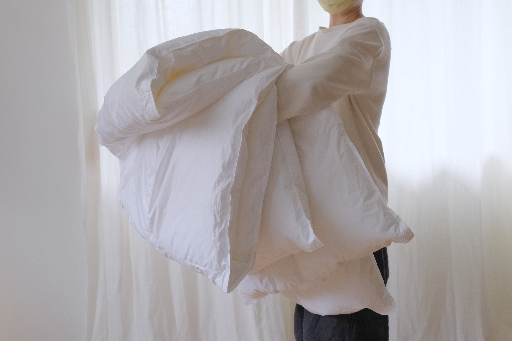 ・必ずカバーをかけて使い、羽毛布団はできるだけ洗わず、こまめにカバーを洗う