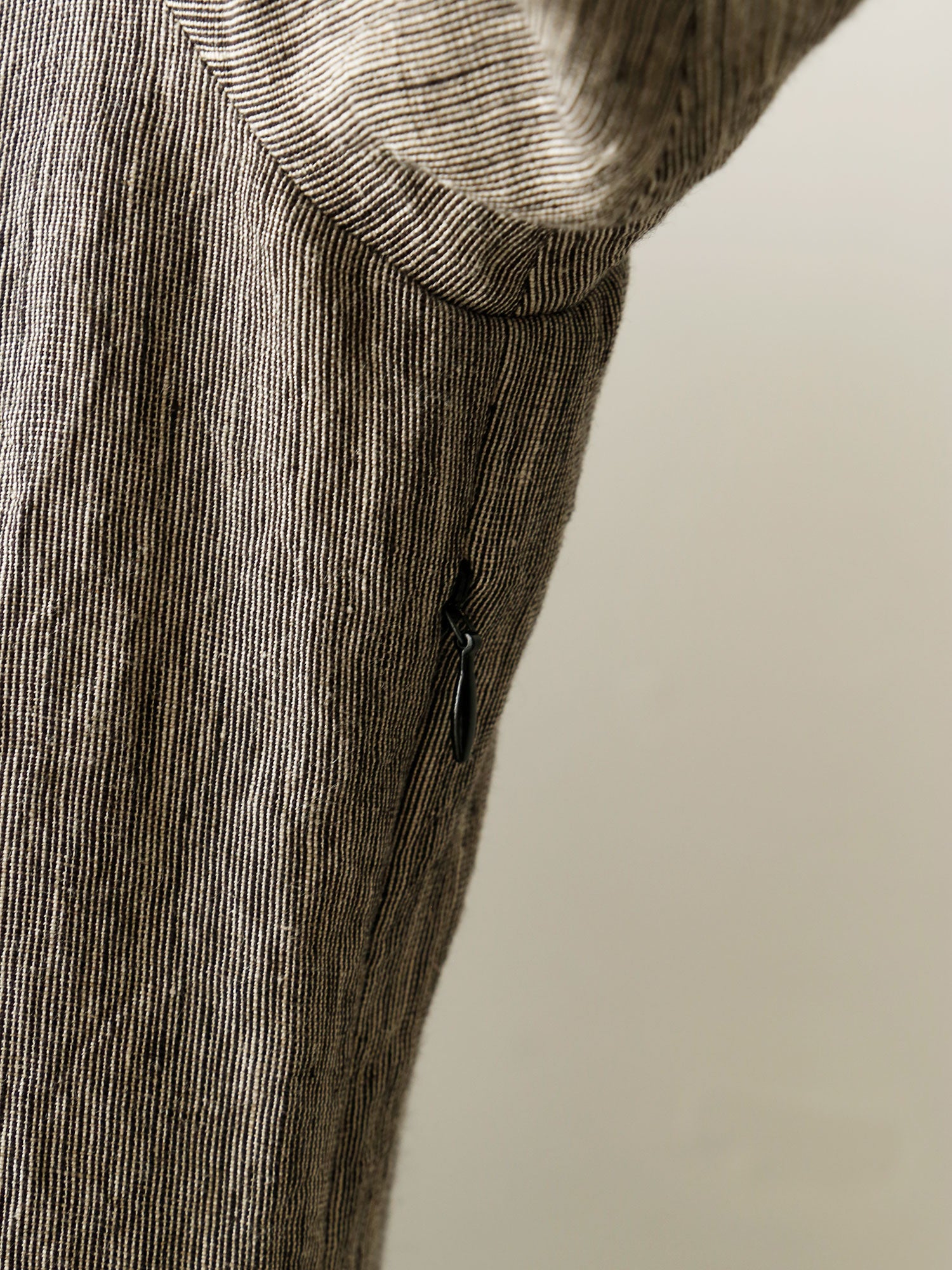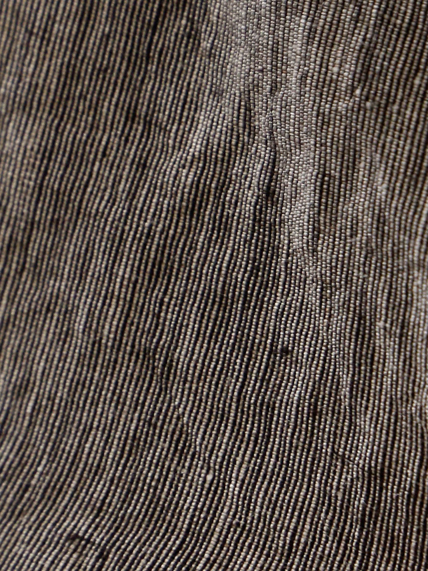 白糸と黒糸を織って繊細に表現されたストライプは、奥行があり表情豊か。落ち着いた雰囲気の中にも華やかさがあります。