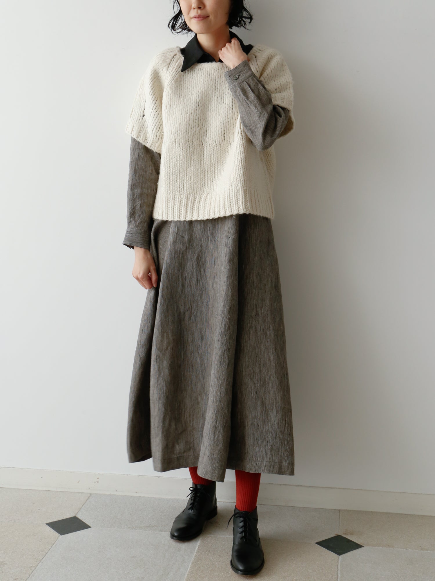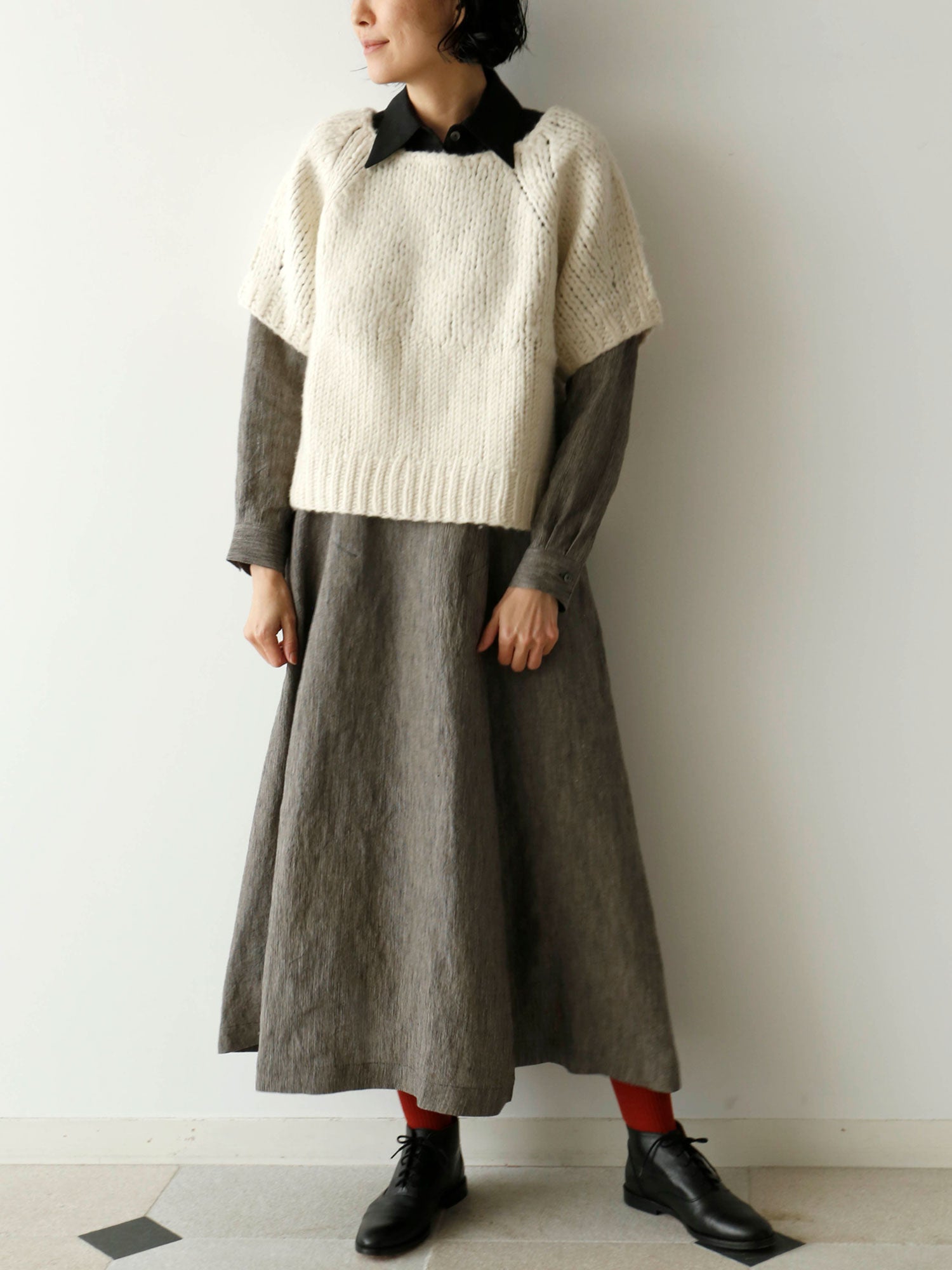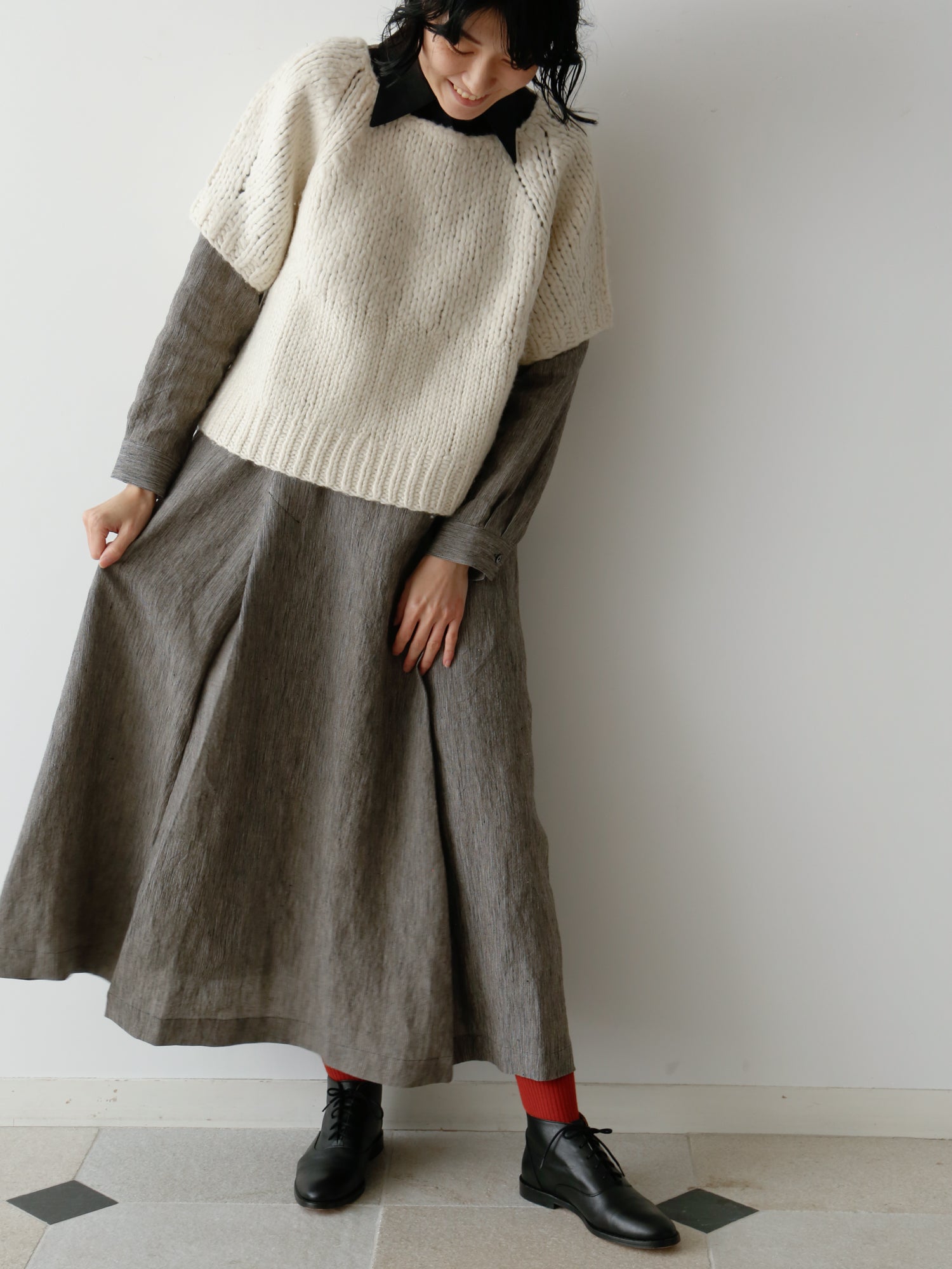 程よい厚みの生地感で、一枚でコーディネートが決まる便利なワンピースですが、スッキリとしたラインで、重ね着にも重宝します。ニットを重ねたり、アウターを羽織ったり、もたつきや着崩れなく綺麗に着こなせます。