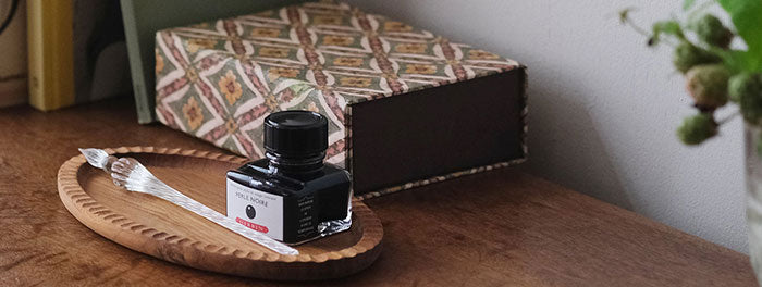 今回3種類のシンプルなガラスペンと14種類のインク、そして相性のよい便せん、そばに置きたくなるノートを集めました。久しぶりの方への手紙や日記、好きな言葉をガラスペンで書いてみませんか。