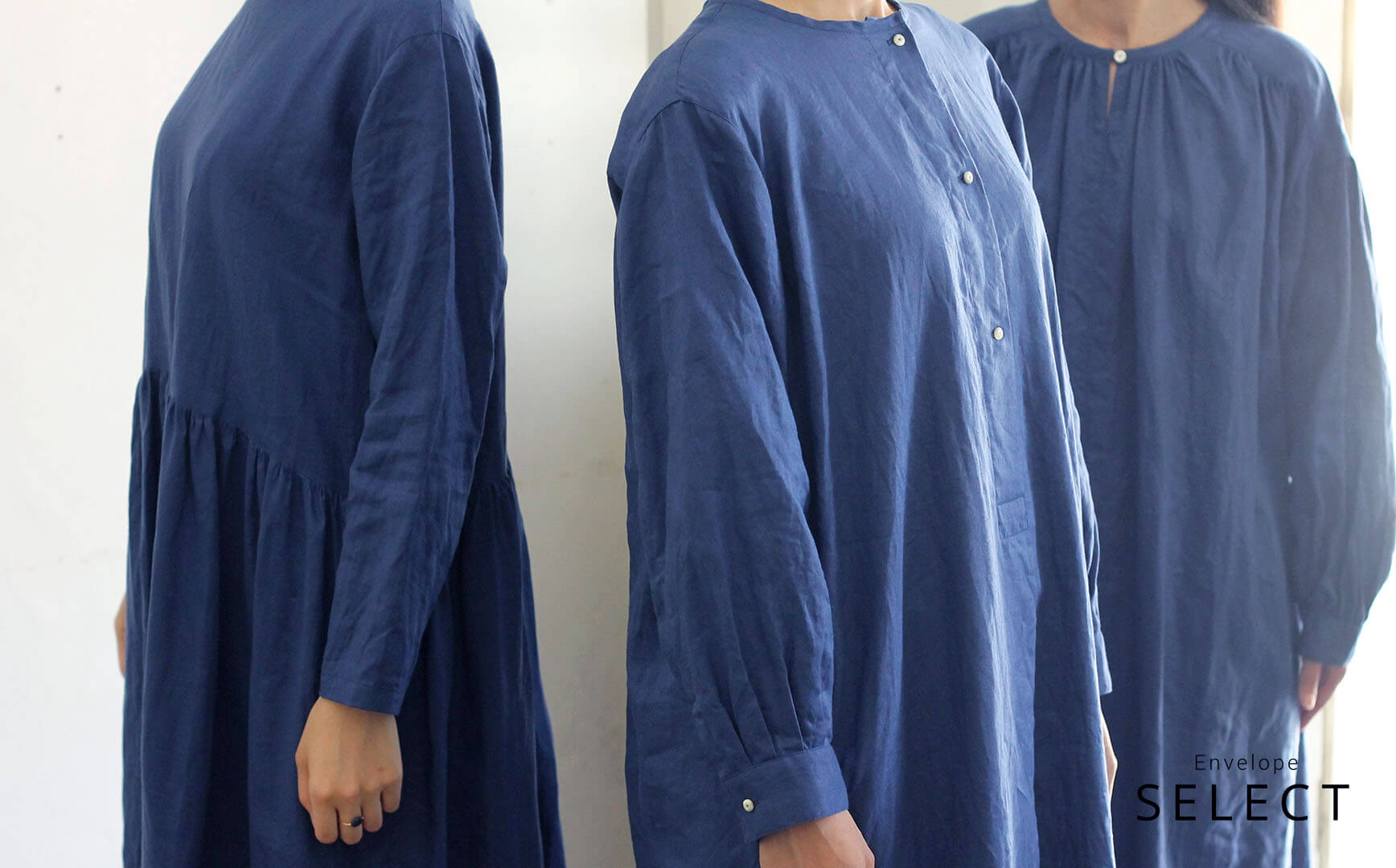 重みのある裾がゆっくりと揺れ、時間をかけて戻るさまが、まるでさざなみのよう。着ていると日常の動作が少し穏やかになるようなワンピースをつくります。