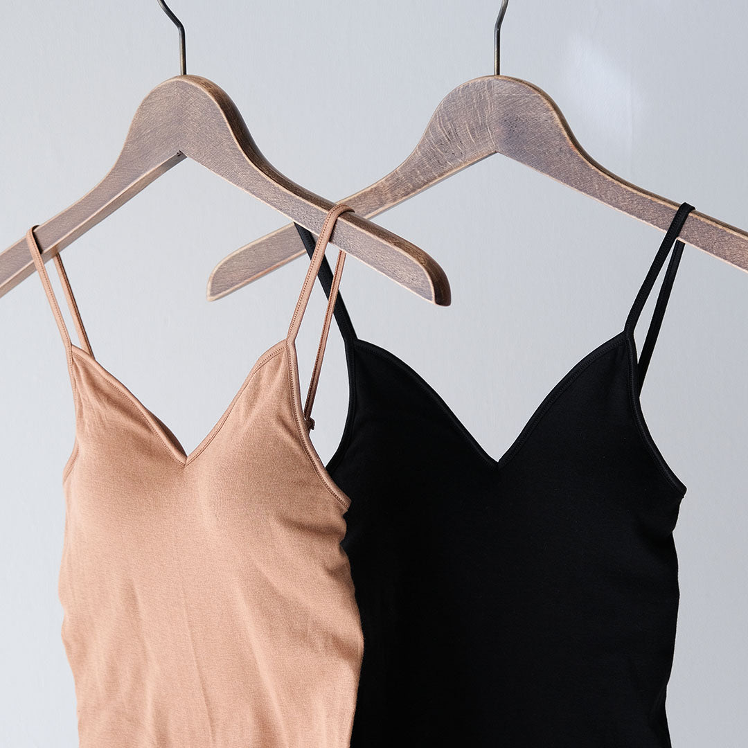 1枚でインナーとして完結するのが嬉しい、パッド入りのブラパッドキャミソール。夏の薄着になる場面でも、冬の重ね着が多くなる時期にも重宝する一枚です。