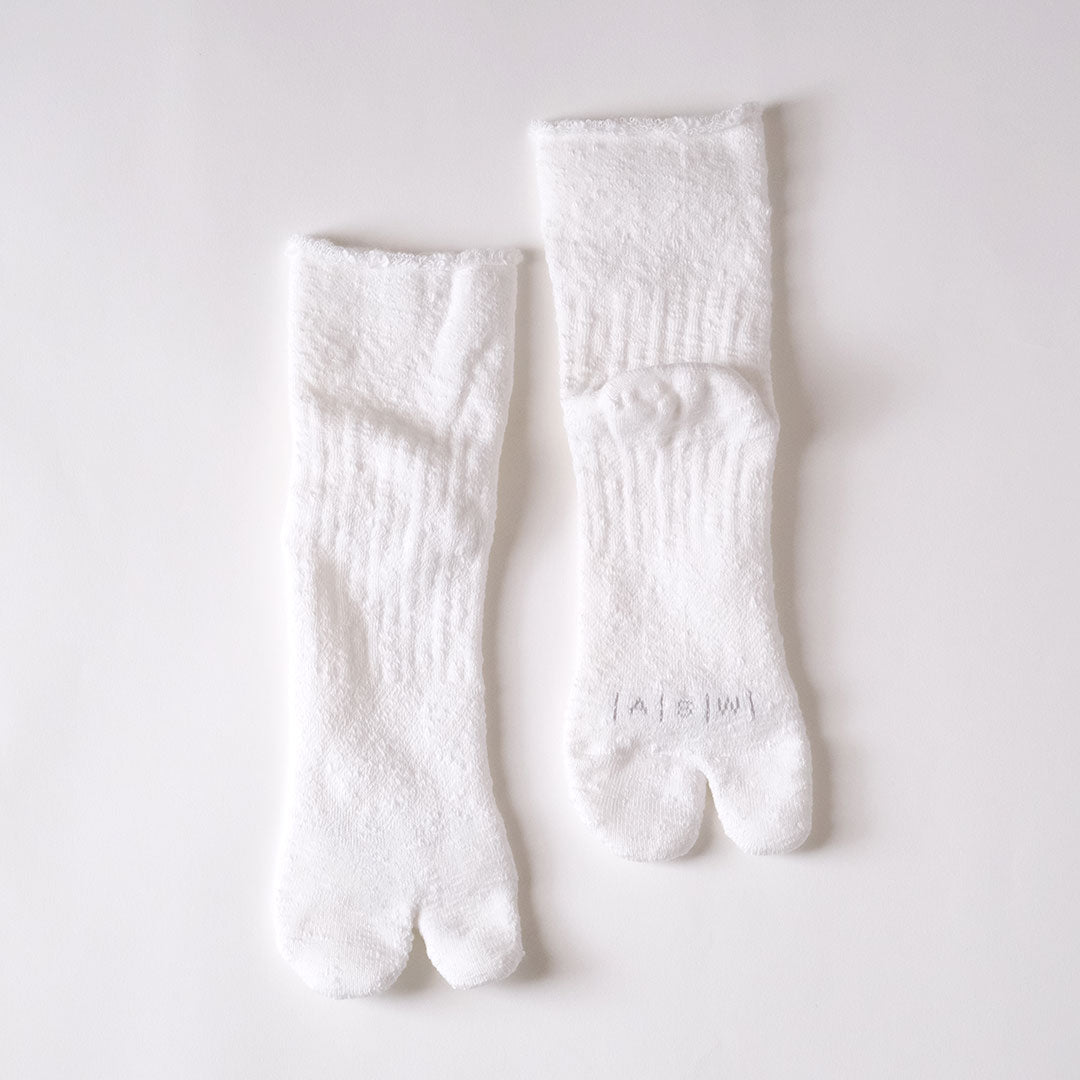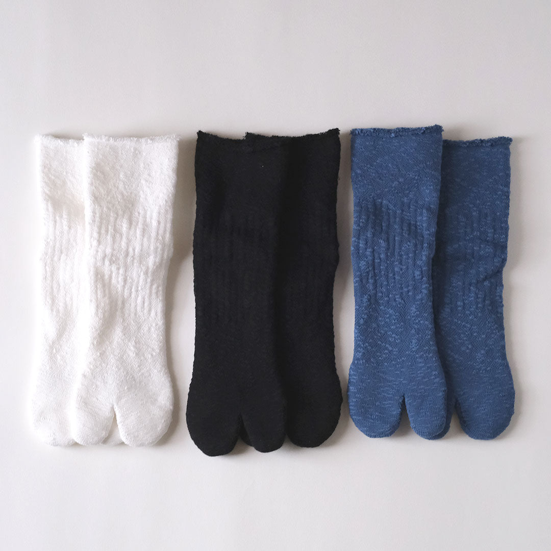 歩き疲れを和らげるやさしい肌触りのコットンパイル地で仕立てた、足袋型ウォーキングソックス。70年以上の歴史をもつ靴下メーカーが手掛ける、SYN:のWALKING SOCKSをご紹介します。