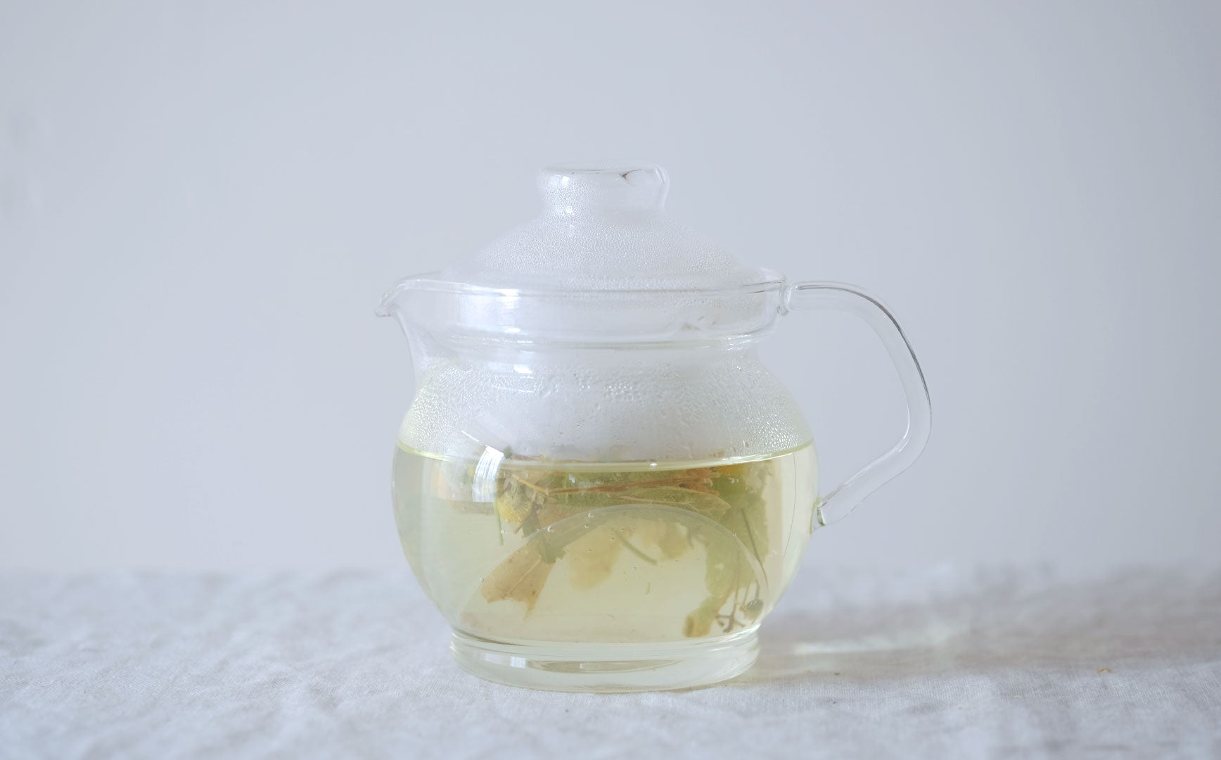 蒸気でくもったガラスポットの中で移り変わる植物の色。湯気とともに立ち上る深呼吸したくなる植物の香り。