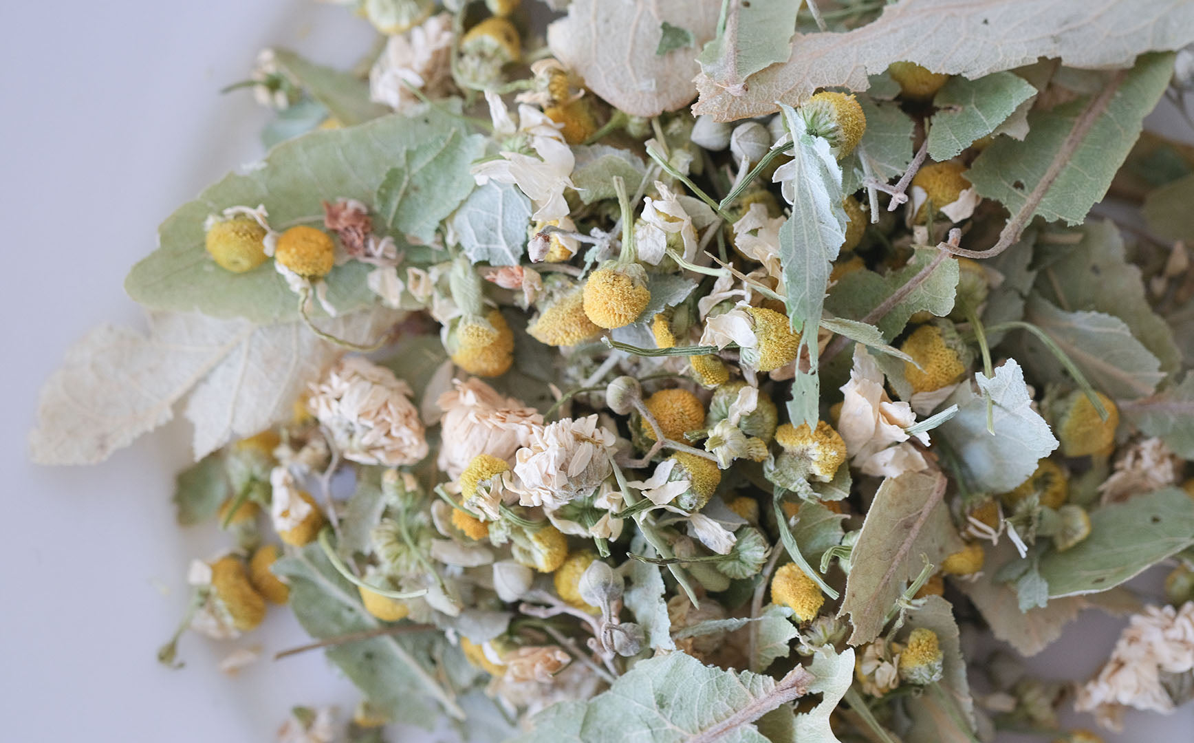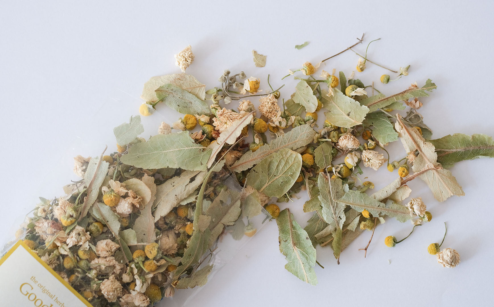 ここちよい眠りのためのお茶「グッドスリープ」には、ジャーマン・カモミール、リンデン、ローマン・カモミールがミックスされています。